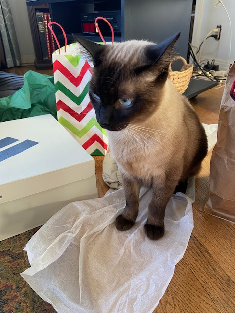 I don't know if Vince did this on purpose - but the bow says: "Love has kept them together for 82 years" (a premonition? a possibility?) and the other bow says Tamale Season. If you saw our freezer you'd know that we are definitely in tamale season.My deconstructed bag wrapping. I took a shopping bag and turned it inside out, stapled it back together and added bows and paper. It looked cooler in person :)Vince is the king of bows. My packages are always so pretty.Now that my record player is working I'm digging re-issued albums. This one is blue!